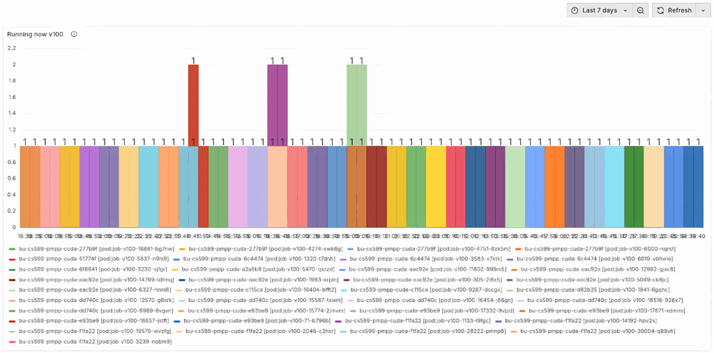 For the GPU programming class, however, observability extends beyond operational health and aggregate datacenter resource usage. Because students are expected to evaluate the micro-architectural features of GPUs experimentally, the cluster is configured to provide access to NVIDIA Nsight Systems profiling metrics. These include deeper counters like warp execution efficiency and shared memory transactions, allowing students to connect coding decisions directly to hardware behavior. Understanding hardware-software co-design will be essential for students later working in disciplines from high-performance computing and data science to AI/ML engineering. Having the opportunity to get access to this deeper level of measurement and analysis is something that typically is not available to programmers in a shared GPU environment, much less to students in a production datacenter. It is absolutely critical, however, in order to match the demands of an application to a resource profile for a project that doesn’t over-provision or under-provision compute, storage and network bandwidth as needs vary dynamically over time.